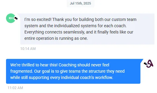 π£οΈ "Our 11-person coaching team runs on one system. No more chaos."